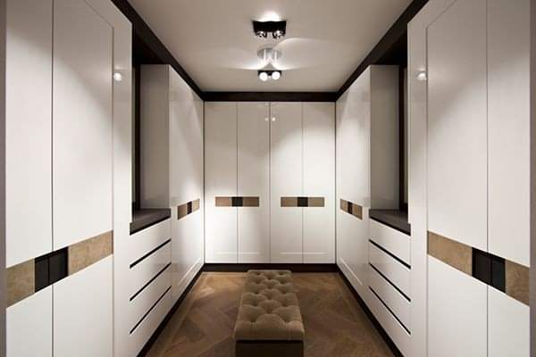 Walk in wardrobe with glossy finishing